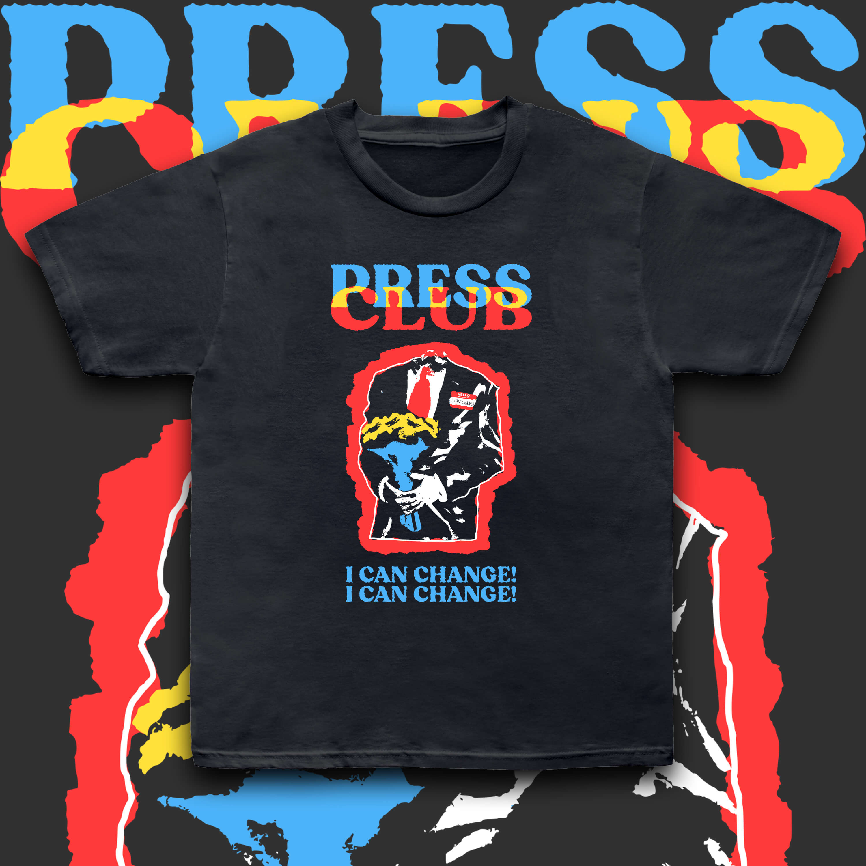 Press Club 'I Can Change' Tee designed by Matt Cochrane and printed on Black Gildan Heavy Cotton Tee.